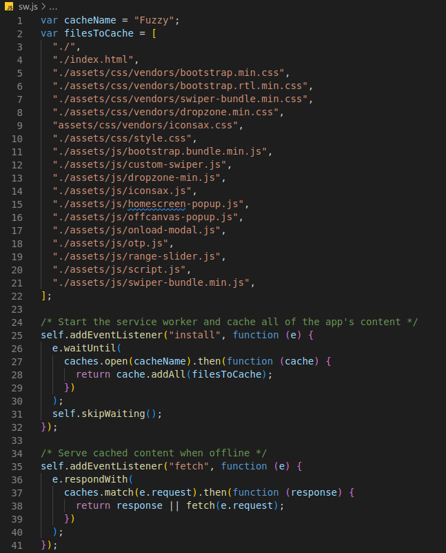 A service worker is a script that allows intercepting and control of how a web browser handles its network requests and asset caching. Here you can attached the css and js files.